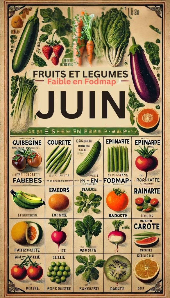 Le régime pauvre en FODMAP vise à réduire l’apport en glucides fermentescibles qui peuvent provoquer des ballonnements, des gaz et des douleurs abdominales chez les personnes sensibles. En choisissant des produits de saison, vous bénéficiez d’aliments plus frais, plus savoureux et plus riches en nutriments, tout en soutenant l’agriculture locale. Juin offre une variété accrue de fruits et légumes, permettant de diversifier votre alimentation tout en respectant votre confort digestif.